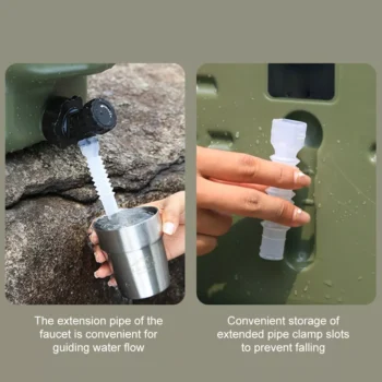 - Safe and Durable: Made from food-grade, BPA-free materials, this water container is safe for storing drinking water and built to withstand harsh outdoor conditions.