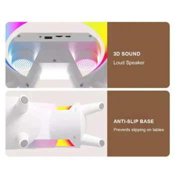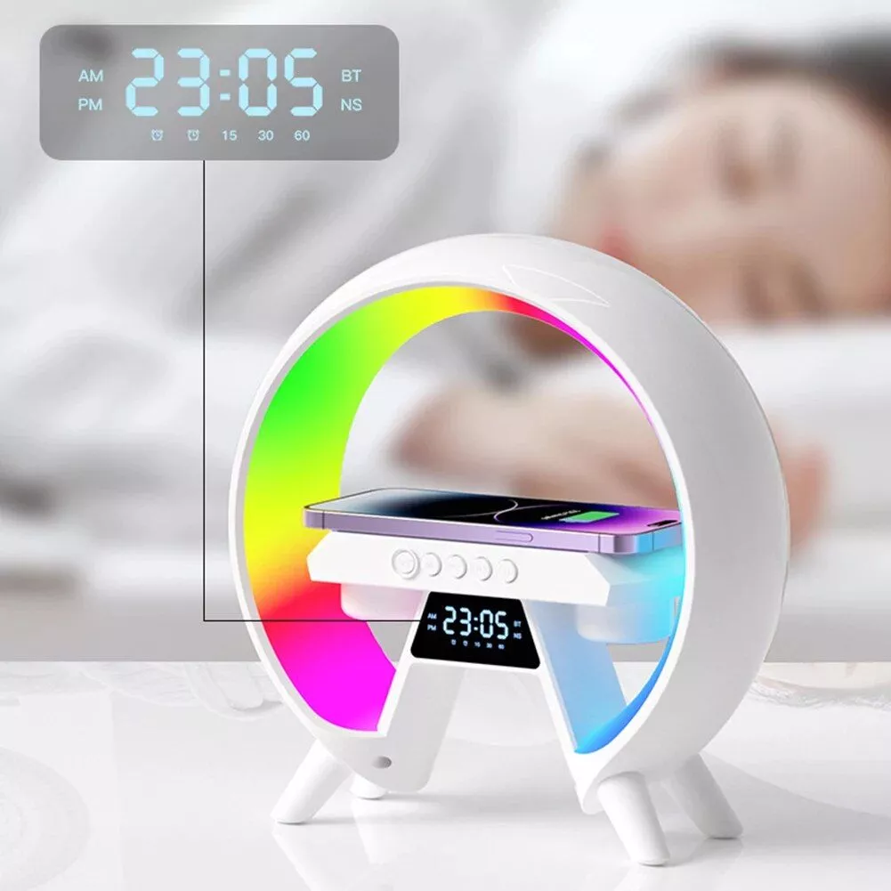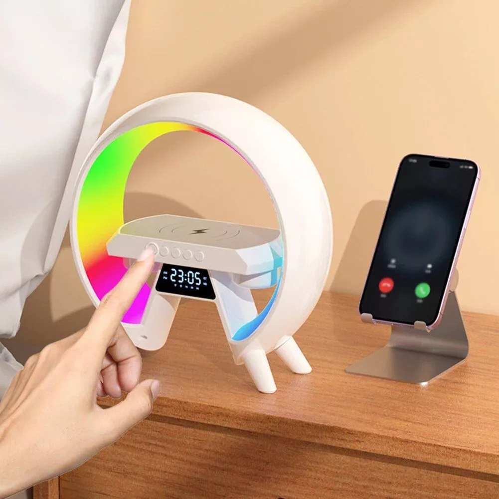 Experience a blend of modern technology and stylish design with our 3-in-1 Wireless Charger Stand. This multifunctional masterpiece doesn’t just serve as a charging station, but also sets the ambiance with its RGB night light and fills your room with your favorite tunes from its built-in Bluetooth speaker.