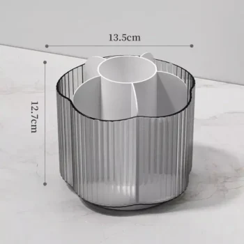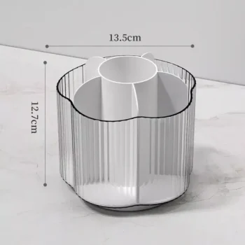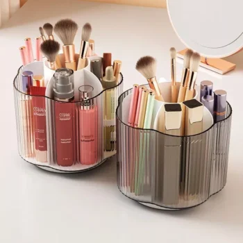 Our organizer is not just any storage device; it’s a game-changer in cosmetics organization. Constructed from high-quality plastic, this durable organizer is designed to withstand daily use while maintaining its elegant appearance. The unique rotating design provides easy access to all your makeup items, saving you time and effort. Its dustproof feature ensures your makeup brushes, lipsticks, and eyeshadows stay clean and ready for use, free from the dust and debris that can accumulate on a dresser or vanity.