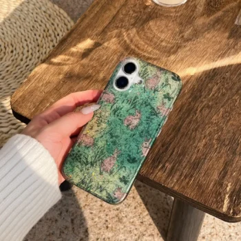 Designed to be both practical and stylish, it not only provides a layer of protection but also gives your device a delightful, cute, and luxurious look. The combination of vibrant green grass and glittery rabbit bunny art makes this case a true standout in the crowd. You’ll love the way it feels in your hand, offering an excellent grip while protecting your phone from everyday wear and tear.