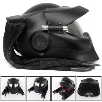 Elevate your riding experience with our DOT Approved Retro Predator Full Face Motorcycle Helmet. Designed for the bold and adventurous, this helmet is not just a protective gear but a statement of style and strength. The sleek black braid design adds a unique edge, making you stand out in any crowd.