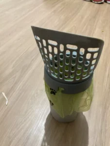 The bags hold much less than the whole scoop, so I removed the bags, and now the scoop holds much more, covering the holes with tape. Now it’s a nice big scoop that can hold a lot.