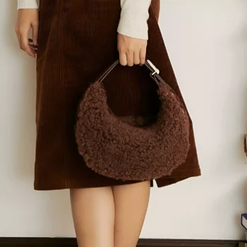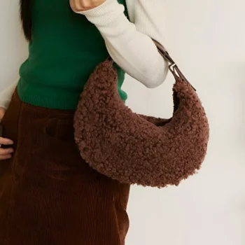 Stay Stylish and Cozy with the Half Moon Fluffy Wool Winter Handbag