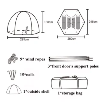 - Outside materials: 210T black glue-coated waterproof fabric (2000-3000mm UV50+)