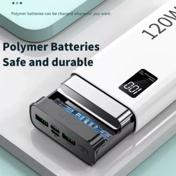 The 120W High Capacity 50000mAh Fast Charging Power Bank is not just another charger. Its high-capacity battery and fast charging technology set it apart, making it a reliable companion for your tech needs. Whether you’re a frequent traveler, a busy professional, or someone who relies heavily on their devices, this power bank is designed to meet and exceed your expectations. Stay connected, stay powered, and never miss a moment with this exceptional power bank.