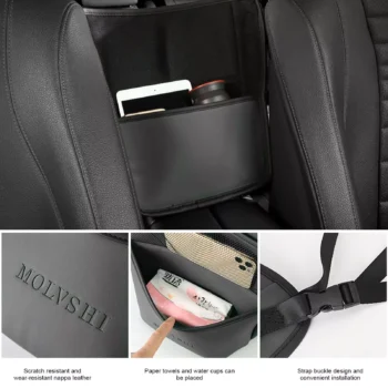 Transform your vehicle’s interior with our Luxurious Leather Car Seat Organizer. Seamlessly designed to fit most vehicles, this organizer not only augments your car’s aesthetics with its premium Nappa leather but also offers an impeccable solution to declutter and enhance your driving experience. Gone are the days of rummaging for that lost lipstick or misplacing your keys in the abyss of the car. Welcome a streamlined drive, every time.