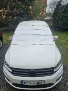 My wife’s new car lacks an electrically heated windscreen, so I invested in one of these covers. It does the job well, although it can be a bit tricky to fit. You have to align it perfectly; otherwise, it may overhang the door opening on one side. It’s easiest to install with two people, and if you’re parked against a wall, it’s even more challenging.