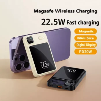 With a massive 50000mAh capacity, this power bank can charge your devices multiple times before needing a recharge. It supports 22.5W super-fast charging, PD20W two-way fast charging, and magnetic Qi wireless charging, making it a versatile choice for any tech enthusiast. The sleek ABS+PC material and compact size (3.94″ x 2.52″ x 0.59″) make it an ideal companion for travel, work, or daily use.