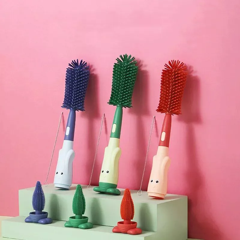 Introducing our innovative and practical Multi-Purpose Silicone Baby Bottle & Pacifier Brush Set, designed to simplify the cleaning process for busy parents. This set is a must-have in your baby care arsenal, providing a thorough and gentle clean for all your baby’s feeding items. The set includes a variety of brush head designs, each specifically tailored for different cleaning needs. The soft, food-grade liquid silicone material ensures a residue-free clean, while being gentle on all surfaces. The cute storage base keeps your brushes organized and easily accessible.
