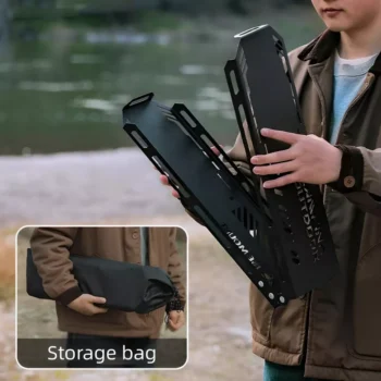 The Outdoor Triangular Storage Rack stands out due to its unique combination of durability, portability, and functionality. The iron construction ensures it can withstand the elements, while the foldable design allows for easy transport and storage. The triangular shape provides excellent stability, making it a reliable surface for your tableware, cooking tools, and other camping gear. Additionally, the included storage bag makes it even more convenient to carry and store.