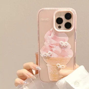 What sets this case apart is the creative combination of form and function. It’s more than just a protective cover—it’s a fashion statement. The clear background lets your iPhone’s original beauty shine through, while the three-dimensional pearl bow and ice cream charm turn your phone into an accessory that reflects your unique taste. It’s luxurious, affordable, and full of character.