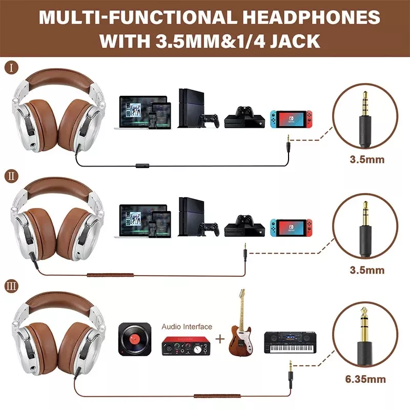 No need for multiple adapters; our headphones come with a long, 9.8-foot cord that easily connects to your devices, making them perfect for use with mixers, computers, and smartphones. The detachable standard-sized 6.3mm and 3.5mm plugs provide versatility for all your audio needs.