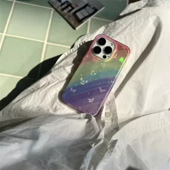 Elevate your iPhone’s style with the enchanting Rainbow Colors Starry Sky Butterfly Laser Phone Case. This captivating case blends the magic of a starry sky with the delicate beauty of butterflies, creating a unique design that is sure to turn heads. Whether you’re looking to add a touch of personality or protect your phone from everyday wear and tear, this case delivers both beauty and functionality.