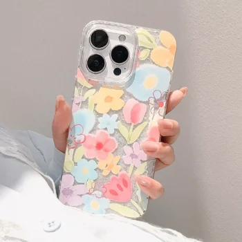This phone case isn’t just pretty—it’s made for life on the go. Its full-coverage construction wraps securely around your device, keeping it safe from drops, scratches, and dust. The floral cartoon-inspired design is applied in a vibrant oil painting style, making each case feel like a miniature work of art. Fine glitter is embedded in the case to add a soft sparkle without being overwhelming—perfect for those who love a bit of shine without the flash.
