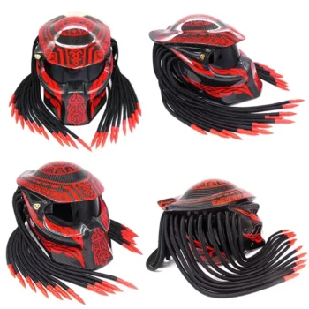 It’s not just a helmet; it’s a statement. The Ultra HD Carbon Fiber Full Face Motorcycle Helmet is the epitome of cool, merging high-tech materials with a unique predator-like aesthetic. The helmet’s striking appearance, inspired by the iconic horror predator, offers a distinctive look that sets it apart from conventional helmets. It’s a symbol of individuality and passion for riders and cosplayers alike.