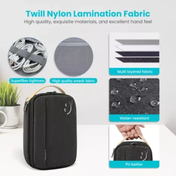 Our double-layered organizer offers ample space for all your digital essentials. The multi-layer design features dedicated compartments for USB cables, chargers, earphones, mobile hard disks, and more. Made from durable Oxford material, this storage bag is not only eco-friendly but also resistant to water, keeping your gadgets safe from unexpected spills and rain.
