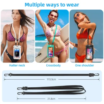 This phone case pouch comes with a secure double sealing system, ensuring no moisture gets inside. It’s dustproof and waterproof, so you can confidently use it underwater or in any wet environment. The included lanyard allows for easy carrying and quick access to your phone, making it perfect for outdoor adventures, pool days, or beach trips. Its transparent design means you don’t have to remove your phone to use it, while the pouch comfortably fits phones up to 7 inches in size.