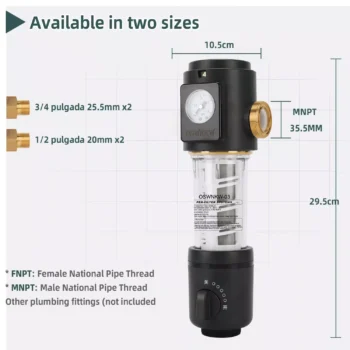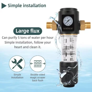 Discover the ultimate solution in water filtration with our innovative Whole House Spin Down Sediment Water Filter. Engineered to safeguard your entire home’s water supply, this advanced prefilter system stands as your first line of defense against common water impurities. Its 40-micron stainless steel mesh efficiently traps sand, rust, limestone, and other particulate matter, ensuring only the cleanest water flows through your pipes.
