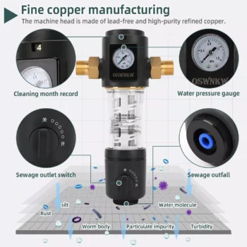 What sets our product apart is the combination of high-quality materials, innovative design, and user-friendly features. The automatic backwashing system ensures low maintenance, while the real-time pressure monitoring provides an added layer of security for your home’s water supply.